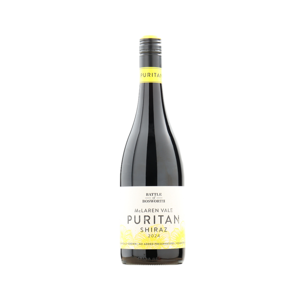 The 2024 Battle of Bosworth 'Puritan' Shiraz is a certified organic, vegan-friendly, and preservative-free red wine from McLaren Vale, South Australia. It is a vibrant, unoaked, and youthful wine with pronounced flavors of blackberry, black cherry, and violet,, designed for early consumption